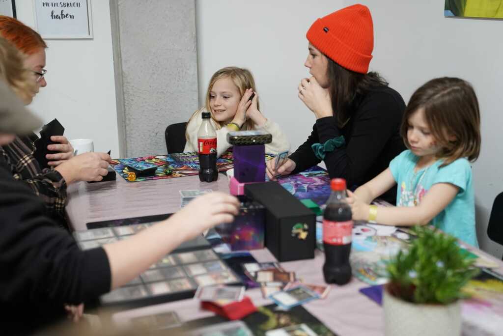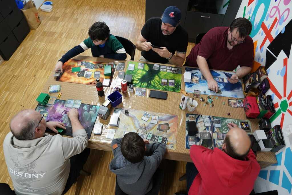 Jeweils samstags vermieten wir unser Lernhaus an den lokalen Sammelkarten-Verein. Dabei wird jeweils am 14 Uhr hauptsächlich Magic the Gathering gespielt. Doch wir sind auch offen für Spiel und Tausch anderer Formate wie Yu-Gi-Oh, Pokemon oder Lorcana. Die Teammitglieder der Sammelkarten Arena sind stets hilfsbereit und führen euch gerne Ins Spiel ein. Es gibt auch Karten zu kaufen und Decks, die man ausleihen kann. Ausserdem steht ein schöner Billardtisch in turniergrösse und ein Töggeli-Kasten bereit für Spiel und Spass.